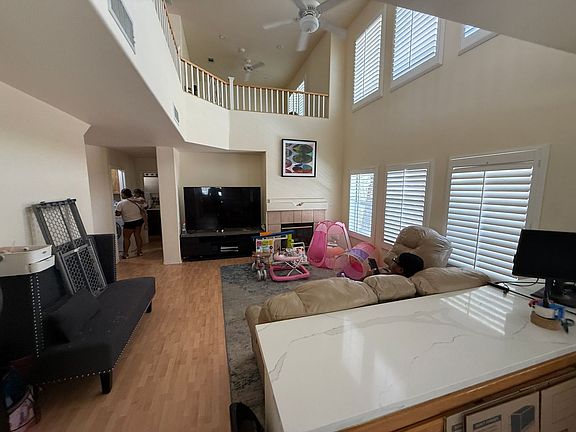 Open floor plan with vaulted ceilings and ample natural lighting. Plantation shutters, ceiling fans, recessed lighting and hardwood flooring throughout! Kitchen features breakfast bar, quartz counters, stainless steel sink, wood cabinetry and garden window. Family room with upgraded lighting and gas fireplace! Spacious primary suite with walk-in closet & private bathroom featuring double sink vanity, tub and walk in shower! Upstairs loft perfect for office space. All appliances are included in this home! 2 car garage. Great backyard with patio, rock landscaping and trees! Conveniently located near schools, parks, trails, shopping, dining, entertainment and more!