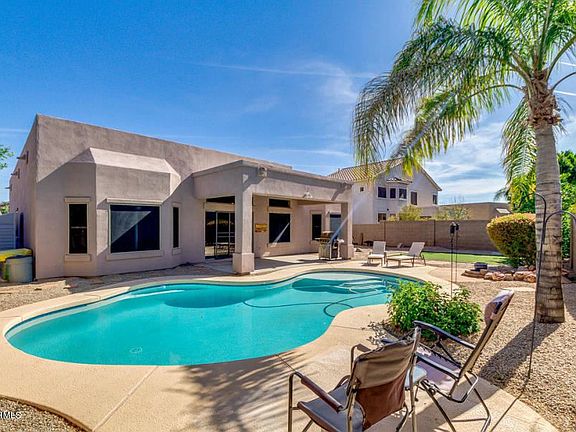Tastefully remodeled beauty! This home has 4 very spacious bedrooms with large closets, one bedroom separated from the others making it a logical choice for a home office or maybe a theater room? The gorgeous kitchen has new quartz countertops, maple spice cabinetry with contemporary crown molding and cabinet pulls, wood tile flooring, Maytag stainless appliances and a large island for extra seating and family gatherings. The bathrooms have stunning cascading waterfall tile design, quartz countertops, new fixtures and tile floors. This floorplan is open and spacious with a bright view out to the back yard oasis with sparkling pool, covered patio and easy care landscaping! The garage has built in cabinets and there is a large RV gate. Mesa taxes but Gilbert schools!!