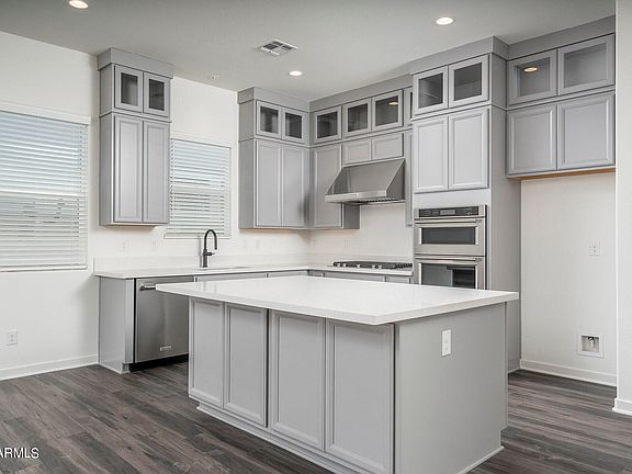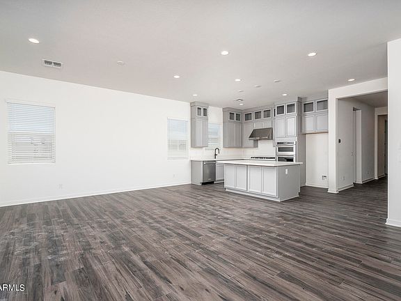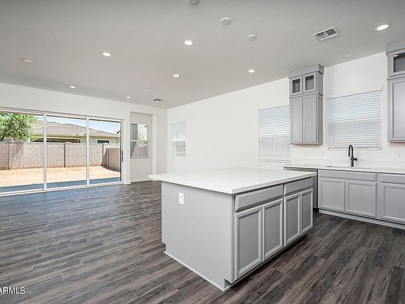 MOVE-IN READY! The well-equipped kitchen boasts stainless-steel built-in appliances, beautiful quartz countertops, upgraded cabinets with stack and a large center island. The casual dining area is adjacent to the kitchen and provides a convenient and intimate setting. The primary suite is in the back of the home for a more intimate, private setting. A luxurious primary bathroom boasts a dual-sink vanity, an upgraded shower surround, a private toilet area, and a spacious walk-in closet. A 12' multi-panel pocket sliding glass door leads to an spacious covered luxury outdoor living space that enhances your outdoor experience. Additional features in this home includes an extended covered patio, window cover package, upgrade AC unit, luxury vinyl flooring throughout, and upgraded fixtures.