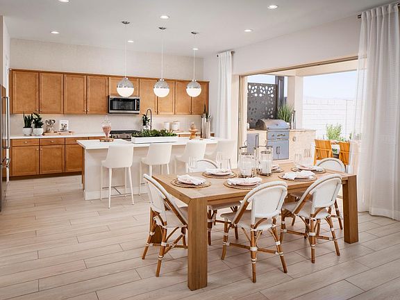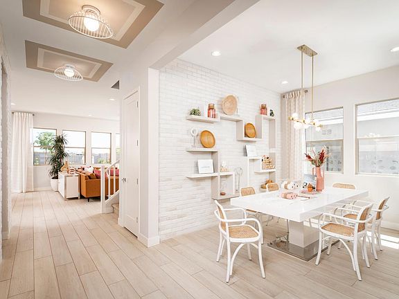Modern family living. The Rumford's welcoming covered entry and inviting foyer reveal the spacious great room and casual dining area, with views to the desirable covered patio beyond. The well-designed gourmet kitchen is complete with a large center island with breakfast bar, plenty of counter and cabinet space, and ample walk-in pantry. The gorgeous primary bedroom suite is enhanced by a huge walk-in closet and spa-like primary bath with dual-sink vanity, large luxe shower, linen storage, and private water closet. Central to a generous loft, secondary bedrooms feature roomy closets and share a full hall bath with separate dual-sink vanity area. Additional highlights include a desirable bedroom suite with closet and private full bath off the foyer, versatile office, convenient powder room and drop zone, centrally located laundry, and additional storage.