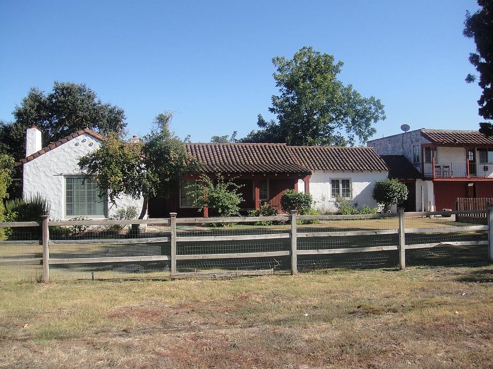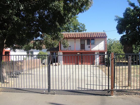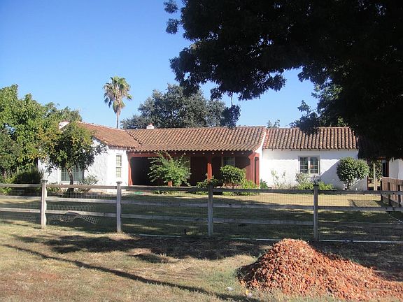Spanish style home with separate in-law unit on almost 1 acre that needs some work. The main house has 3 beds, 1.5 baths, a large living room with wood burning fireplace, dining room and huge open kitchen with breakfast nook and laundry area. The in-law unit above the garage has 1 bed, 1 bath, kitchen, laundry room, living room with access to the front balcony. The original hardwood floors need refinishing. The built in pool needs major repairs and probably should be filled in. The in-law unit also needs work and currently has no heat or air. A walnut orchard is behind the house. Huge covered front porch to watch beautiful sunsets from and a view of fields and horses. Completely fenced at the front and with double wrought iron gates. This Spanish property has excellent curb appeal and huge potential for the buyer willing to put in some work.