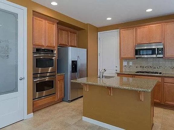 - Kitchen features dual ovens and pantry