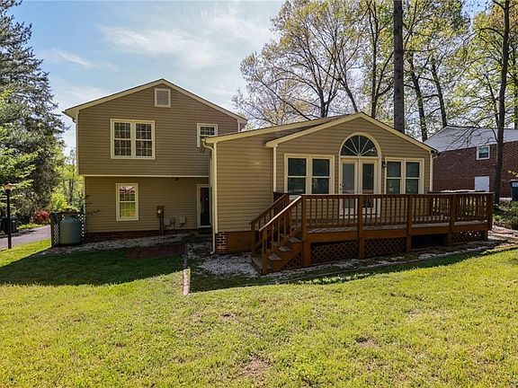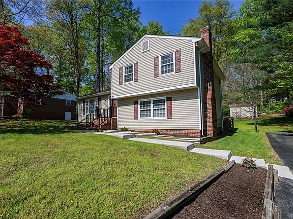 FABULOUS RAINTREE! Always a most sought after neighborhood in the Godwin school district! Quiet semi-circular street with little traffic. NEW PAINT! NEW FLOORING! 1ST FLOOR: Foyer, LR, Dining/Kitchen Combo; Plus open French Doors into nice Addition years ago for "Mom" - BR, full shower bath, small walk-in closet, plus door to big rear deck! (5th BR) Wall removed between original DR and Kitchen, so one larger room. 2ND FLOOR: 3 Bedrooms, 2 baths, great attic storage access. LOWER LEVEL: bright Family Rm with brick FP and big closet; 4th BR or office; and utility room for W/D hook-up, plus door to rear yard. 20' Deck. Paved driveway and private back yard with shed. Ready for your finishing touches. Walk thru the pretty home by clicking on VIRTUAL TOUR icon!