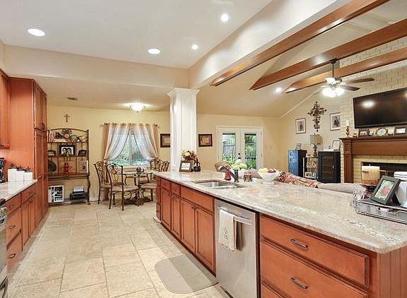 Large home on quiet street in River Ridge. Perfect home for entertaining with formal living/dining rooms. Kitchen renovated 4 years ago with new cabinets, countertops, backsplash & appliances. Open to den with cathedral ceilings, fireplace, wet bar and french doors to patio. Covered patio with pavers add outdoor living. Master suite down with hydro tub, double vanity and separate shower. Workout room & full bath down. 3 beds up with full bath. 2 car garage, big lot 75 x 131.54. Ready for new owner!