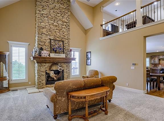 Beautiful, SPACIOUS, 1.5 story in sought after Amber Lakes subdivision! Stunning floor to ceiling stone fireplace and cathedral ceiling is eye catching in great room! Gourmet kitchen boasts granite countertops, walk-in pantry and 2 separate sink areas! Main floor master features huge walk-in closet and see through fireplace into master bath! Master bath has skylight and incredible shower with 3 shower heads! Plantation shutters throughout majority of house! Enormous 2nd floor with LOFT area that has build in desk area! HVAC replaced in 2016! Exterior painted in 2016! Sprinkler system! Walk-out basement could easily add additional (approx) 1000 square feet of living space! Enjoy relaxing outside on your patio or spacious deck overlooking HUGE back yard (over 1/2 acre!). Walking distance to community lake that is stocked to fish! Subdivision includes 2 swimming pools, walking trails, tennis courts and playground! Liberty public schools! This is a MUST see!