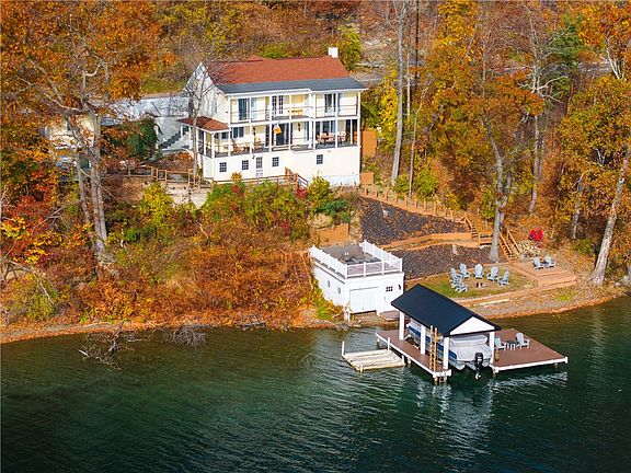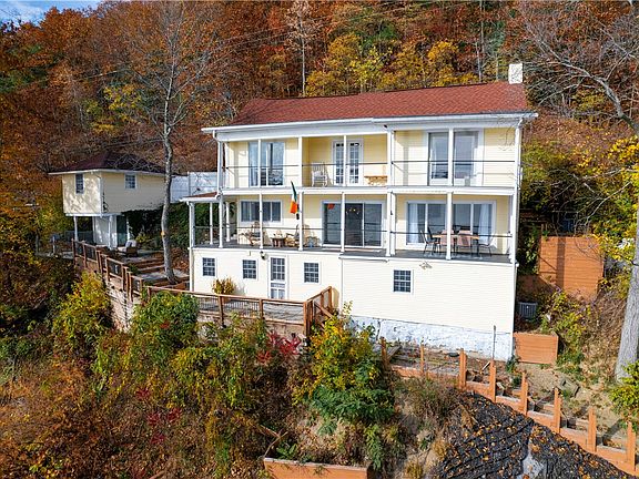 Charming Keuka Lake home w/171 Feet of frontage. Drive to the front door of this gorgeous 3 bedroom, 2 1/2 bath, year-round home w/awesome views & tremendous privacy. Multiple new composite decks & dock, tiered patios, a terrace off of all 3 bedrooms, plus a level lawn at the lake, add to the ambiance. Remodeled kitchen & bathrooms include stainless steel appliances & washer/dryer. Hardwood & LVT flooring complete the decor. Also includes a lakefront boathouse & a separate den/office at street level. Plenty of roadside parking for up to 7 cars & an additional 1.62 acres across the road. Close to Hammondsport and all that Keuka Lake has to offer...restaurants, shops, wineries, breweries & distilleries. This is a one of a kind property! Make it your year round home, 2nd home or investment property. Delayed negotiations to November 7, 2024 at 5 pm. Furnishings and boat are negotiable.