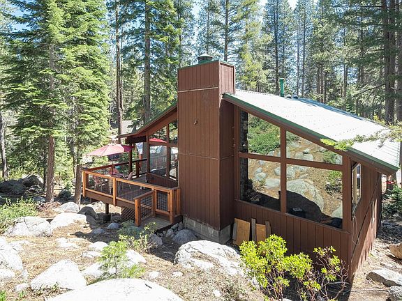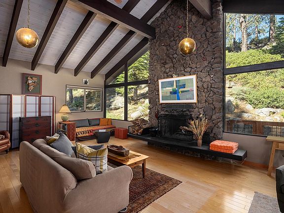 Amazing Donner Lake location... Walk to the homeowner private beach. You'll be awed by the family room with a wall of windows looking out to private wooded area and large granite boulders. Great room concept with spacious dining room and kitchen are perfect for entertaining. Enjoy your morning coffee on the newly constructed deck with a view. Great room features vaulted ceilings, floor to ceiling wood burning fireplace with slate hearth, and beautiful wood floors. Both bathrooms have been tastefully updated. Oversized garage with covered access to home will hold all of your toys and maybe even your boat ! Level driveway parking for at least 3 cars so invite all your friends. Sale includes generator, snow blower and 1 year old television. sailboat and 1997 jeep negotiable! Home shows pride of ownership and is ready for new owners to move in and enjoy mountain and lake living!