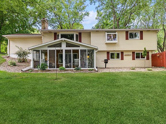 Fantastic location near Brookside Park and fields along with great restaurants and grocery stores. The Open Great Room concept offers a fantastic upgraded kitchen, dining, and living room with a gas fireplace overlooking the spacious oversized yard. Owners suite with updated 3/4 bath, hardwood floors, and large closet. Two other main floor bedrooms, one set up as an office for the work-at-home owner. Large lower-level bedroom could be divided into two. The walkout level is designed for entertaining, a family room with a wood-burning fireplace, a flex area with a bar, a 3/4 bath, a workshop, laundry and a spacious 3-season porch. Gas grill connected to natural gas just outside the porch. MANY UPGRADES AND IMPROVEMENTS! Polyaspartic garage floor, recently stained front cedar siding, Leaf-Guard gutters, extra wide concrete driveway, fiberglass yard barn, cherrywood cabinets, hard surface countertops, added attic insulation, Solar tub, two-zone heating, six-panel cherry doors + More.