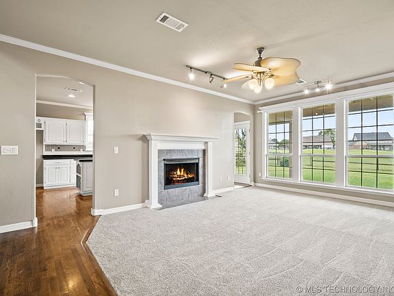 new stainless appliances and a beautiful Island, set to inspire delightful culinary moments. Underfoot, newly installed carpeting all throughout the home complements the revitalized wood floors. Fresh paint Throughout the home. Overlooking the golf course and pond from the balcony upstairs is the charm of suburban tranqulity. Owasso's most esteemed schools are within close reach. Seller is offering potential buydown for a buyers interest rate with an acceptable offer."