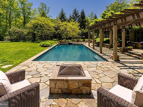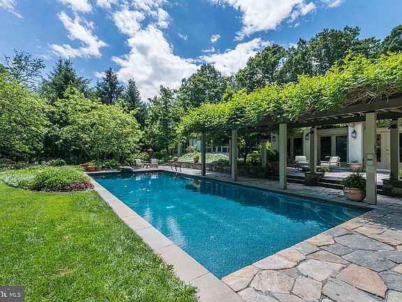 Nature lover's paradise! Custom contemporary rambler on sprawling 2 acre lot on prestigious street w/in walking distance to Potomac Village. Sensational main level living includes master bedroom suite with marble BA & glorious "hers" closet! Lush grounds include heated pool & stone patios, English conservatory, separate guest house with kitchenette, 5 car gar +motorcycle showroom/studio /gym, and generator. Absolutely spectacular!