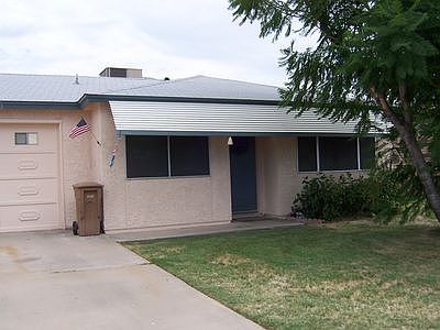 Are you looking for a home in a great area? Then look no further. Sun Air Estates is a short commute to freeways, shopping, medical facilities, sports complexes, Westgate Center, malls, restaurants and movie theaters. This could also be a perfect 2nd home. No age restriction to buy. One occupant to be 55+. There are no BUY IN fees like the Sun Cities have. It will be hard to find a home with these features at this price in any of the neighboring Adult communities. Seller will look at all offers. Living room features a beautiful, neutral color ceramic tile floor. Master bedroom has carpet and a walk-in closet with doors leading to it from both the bedroom and master bath. Master bath has marble shower. Guest bath has also been updated. Eat in Kitchen with matching white appliances that include a range, built in microwave, dishwasher and refrigerator Huge 2nd bedroom is currently being used as a Den/Office. Has a full closet and can easily be used as a guest bedroom. Roof and AC Unit replaced in 2003. Sunscreens on all windows and ceiling fans in every room. Garage has a pull down ladder for easy attic access and a garage door opener. The low HOA fee of $55 a month includes use of the Recreation Center, heated swimming pool and spa. The HOA also maintains yard landscaping. What more could you want for this low HOA fee? INTERESTED PARTIES MAY CAll 218-929-7206 Neighborhood Description No age restriction to buy but one occupant to be 55+.