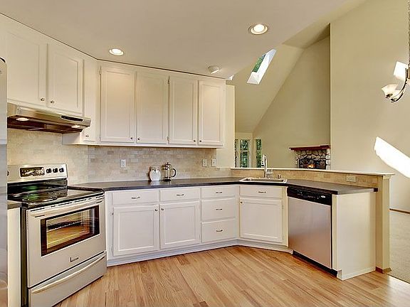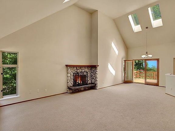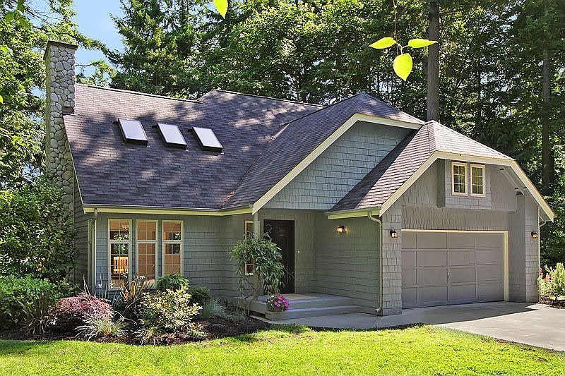This English style cottage lives large! Main floor master. Lovely privacy. Great for gardening. Vaulted ceilings and skylights bring in sun and light. Updated with new light fixtures, carpet & paint throughout. Great kitchen with all new stainless appliances. Total refinish on the master bath, a generous tiled shower and new double vanity. All this on a very private lot surrounded by 3 acres of open space, with a peek-a-boo view of the sound and Cascade Mountains including Mount Baker. Features List: - Newly Remodeled - New Carpet Throughout - New Paint Throughout - New Hardware Throughout - New Light Fixtures Throughout Kitchen: - White Oak Floors - Cabinets with New Hardware - New Tile Backsplash - Whirlpool Stainless Steel Refrigerator - Whirlpool Stainless Steel Dishwasher - Frigidaire Gallery Stainless Steel Oven - Pantry - French Doors to Beautiful Back Deck Master Bedroom: - Master on Main Level - Walk in Closet Master Bath: - New Vanity - Double Sinks Upstairs: - Two Bedrooms - Laundry Room - Office / Den / Bonus Room - Full Bathroom with New Vanity Exterior: - Covered Front Porch - River Rock Chimney - Shingled Exterior - Mature, Classic Northwest Landscaping - Private Setting - Peek-a-Boo View of Cascade Mountains including Mount Baker - Two Car Garage with Bonus Refrigerator & Shelving