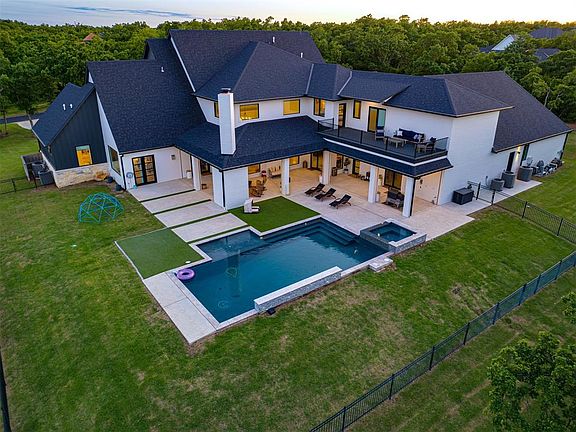 Other amenities include: private pond next to the property, equestrian trails, rooftop balcony/deck, TWO home theater areas, bonus room, play room, Elan Home Automation, safe room, formal dining area, office suite, grand entry, home gym, turf grass around pool, outdoor fireplace, modern fixtures, room for wine storage, 2 utility rooms, kids bunk room, etc.