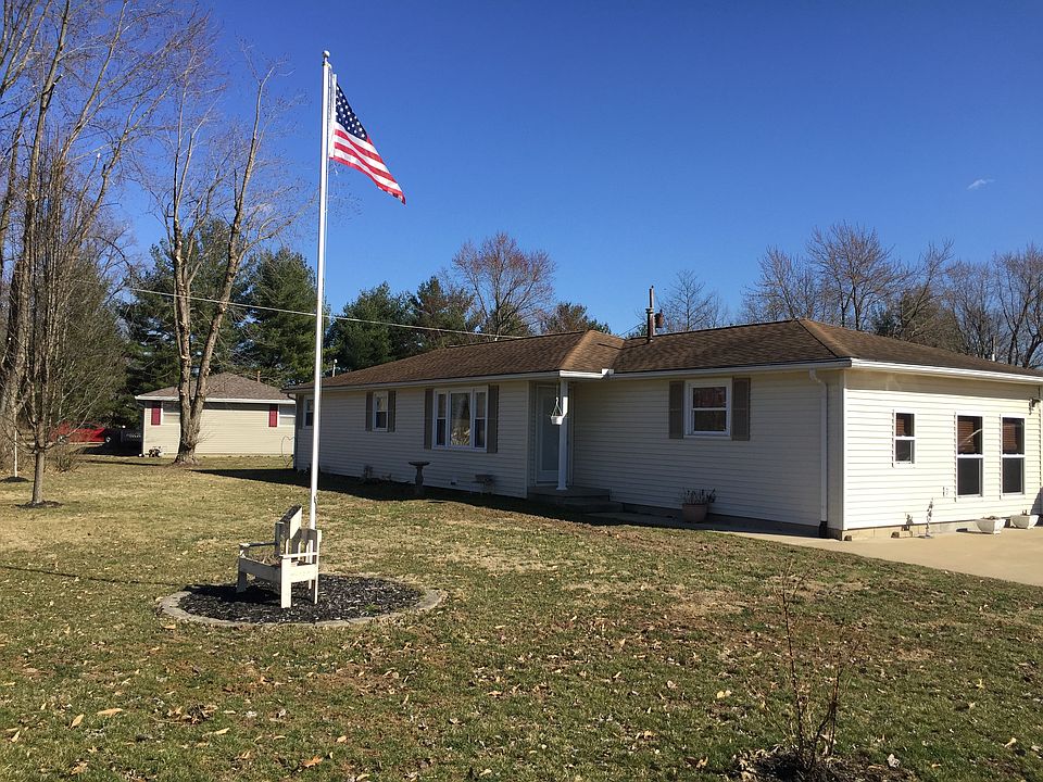 This move-in ready 2 bedroom, 2 full bath, hardwood floor, vinyl sided home located at 10109 S. McCord Lane is very nicely located in a quiet subdivision on top of the West hill in Rosedale, Parke County, Indiana. The home is approximately 1,665 square feet situated on .50 acres. The large master bedroom has an attached master bathroom with a wall-to-wall closet. As you walk through the living room and down the hall is a nice full bathroom with large closet, and the second bedroom, which is carpeted, is at the end of the hall. The galley kitchen has a new microwave, refrigerator, and dishwasher, with an electric stove. The dining room area is off of the kitchen in front of the glass patio sliding door. The living room has a glass front door and also a large picture window. The family room is located off of the living room and features a wet bar area that includes a custom glass stem ware hanging rack, sink, and refrigerator, as well as a large storage closet, and laundry closet. The deck has a custom open style roof with ceiling fan. The yard is nicely landscaped with minimal maintenance. There is a 1 ½ car detached garage located at the end of the cement driveway. Call 317-287-4981