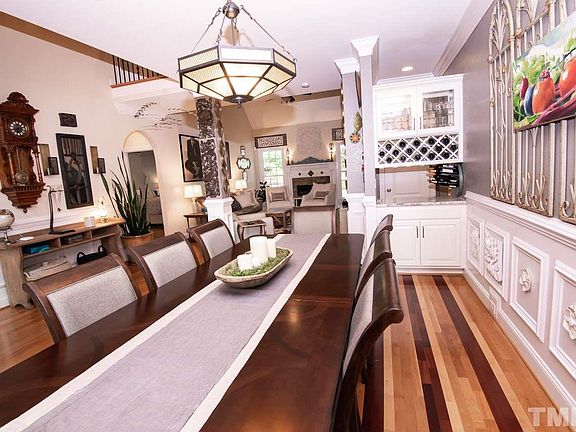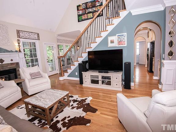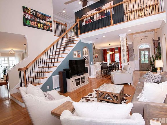 Wow! Must see the great architecture and CUSTOM home on a prime lot location in Porto Fino! Beautiful, modern, designer beauty w/ white kitchen, fantasy granite and hardwoods throughout the first floor. Outdoor oasis w/ $35K in land/hardscape, screened in deck, patio, 2 decks, hot tub and a private back yard that backs up to 4 barns! You can't find this quality and style in most homes. Master down, gathering Room, 2 fireplaces, 4 bedroom PLUS bonus. Raleigh side of Wake Forest. Very convenient!