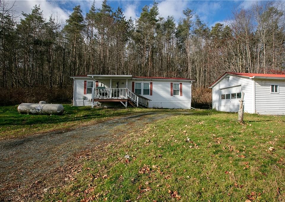 Well maintained double wide mobile home on nearly 6 acres of land! Owners suite features a large bathroom with separate vanity area. The other 2 bedrooms are at the opposite end of the home with a 2nd full bathroom. Large living room opens to spacious eat-in kitchen. Laundry and utility room leads to covered back deck. There is a 2nd covered deck at the front of the house. 1 car detached garage has electric. This lot offers a lot of possibilities. There is a 2nd driveway, septic and spring fed well where an older mobile home used to be prior to this one being placed in 1993. Just a short drive to Prattsburgh and less than 15 min drive to Hammondsport.