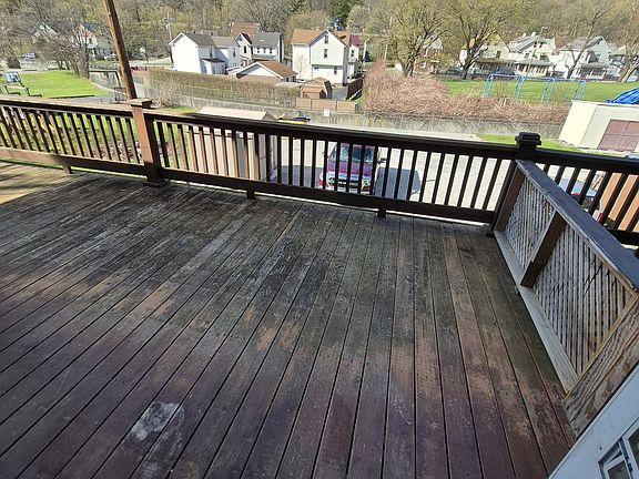 large Home with LVP Flooring in the living room, kitchen and bathroom. Both bedrooms have carpet. The eat in kitchen has a Refrigerator and Stove With Large rear deck. The large basement offers a dry space and has laundry hook up. Landlord Pays for Trash and Cuts the grass. Tenants pay for water, sewage, electric and gas. pet friendly with pet rent of $50 per pet a month. Move in Requirements- Proof of income, no past evections, no criminal record. Total to move in is $1650.00 lease is 12 month then month to month, Tenants pay water, sewage, electric and gas. Landlord pays trash and cuts the grass