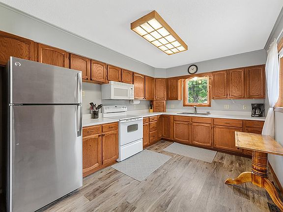 Exactly what you have been dreaming of and more! Impressive rambler located in the city but feels like country with over 1/2 acre lot and beautiful trees for added privacy. Welcome to this 4 bedrooms 3 bath home where all you have to do is move in. Main floor has 3 bedrooms, laundry, 1/2 bath and full bath. New flooring in the kitchen, dining and new carpet in living room. Lower level features additional bedroom, 3/4 bath & family room. Wet bar and entertainment area for all those social gatherings. Energy efficient with added wood burner for those cold winter nights. Outdoors you will find expansive cement work with patio, additional parking, detached 2 car garage and attached 4 car with over 1300sq ft of insulated, heated & epoxy floors completed in 2015.