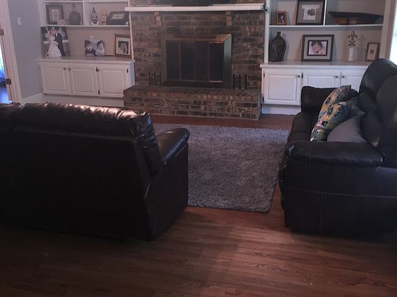 Fabulous location! Home features open kitchen with eat in bar; separate dining room; large den with built ins and wood burning fireplace; Large master bedroom with double vanities, soaking tub and huge walk in closet. Every bedroom has a walk in closet. Large laundry room with cabinets. New paint, new carpet, new floors! Patio with brick cooking pit. Great backyard!