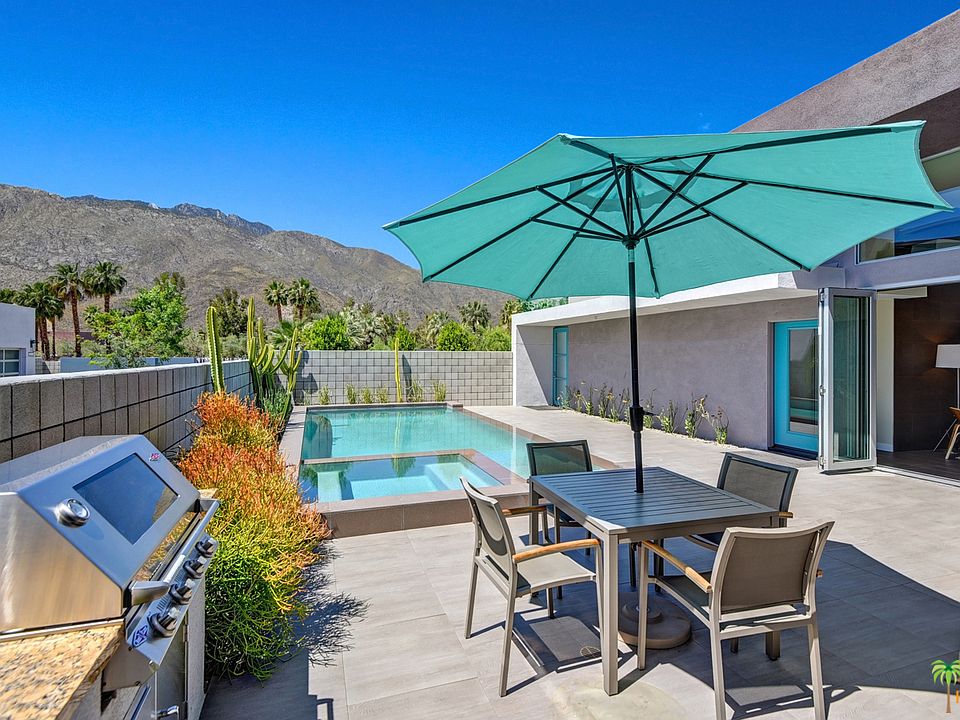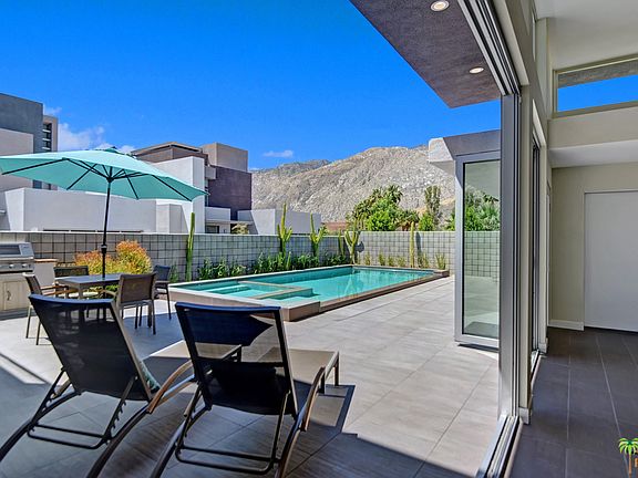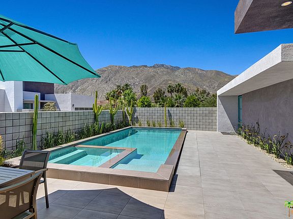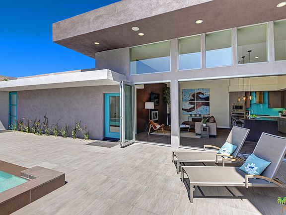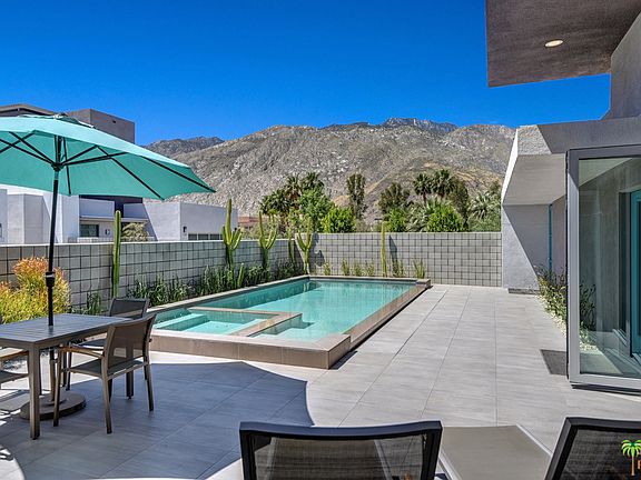 Located in the heart of Downtown Palm Springs, Sol delivers a new generation of living! This Plan-one model home features 2,209 SF of modern living space. Featuring 10-14' ceilings, duel master suites showcasing double vanities, soaking tub, walk-in showers & closets. A gourmet kitchen, powder room, home office, laundry room, 2 car garage & wet-bar w/roof-top deck and endless Mt. views round off this amazing homes features. High-end finish details includes designer flooring, smooth-finish drywall & quartz countertops. Exterior elevations showcase strong architectural lines, energy/green features such as low-E glass, solar ready, 220v car charging stub & more. Slide open your 20' Nano door system & bring the outdoors in! A large outdoor entertaining areas feature an expansive lanai with custom pavers, outdoor grill, fireplace, outdoor dining, infinity edge pool & stunning Mt. views all surrounded by an architectural zero-scape desert landscape...desert living at it's best!