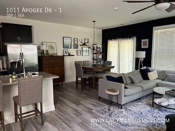 This 1853 square foot townhome home has 3 bedrooms and 2.5 bathrooms. This home is located at 1011 Apogee Dr #1, Durham, NC 27713.
