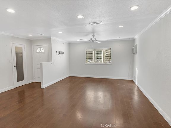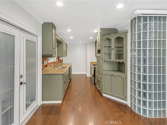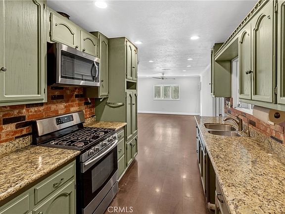 Mid century home nestled in a tranquil neighborhood of Corona. Open concept living room w/ engineered wood floors, recessed lighting, A/C, into the kitchen w/ granite countertops, custom cabinetry, stainless steel range/microwave & Pure Blue H2O water filtration system. 3 good size bedrooms w/ ceiling fans, A/C and 1-3/4 bathrooms. French doors out to a large backyard with a custom patio providing a plethora of shade for entertaining or your workshop needs. 2 car garage with washer by Samsung & dryer by Bosch. Ring system w/ 3 cameras. Adjacent to great schools, multiple hiking trailheads, parks, restaurants & retail. Easy commute to Orange County & Beach cities. No HOA and low taxes. Ready for immediate move in.