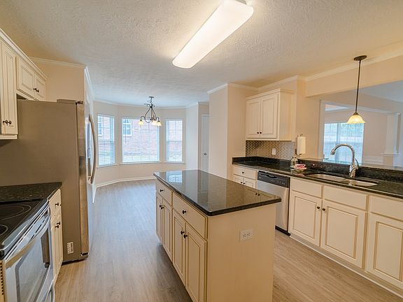 Move in ready! Four bedroom, two bath brick ranch in convenient location. Open floorplan features large kitchen with island and two pantries, breakfast area, dining room with trey ceiling, great room with gas fireplace and vaulted ceiling. One bedroom with vinyl plank flooring and vaulted ceiling. Master suite with large bath with tub and separate shower, big walk-in closet. Three flat screen TVs included. All appliances included. Fully fenced backyard.