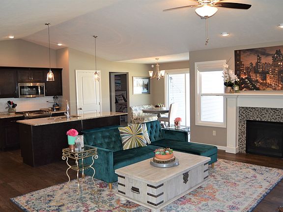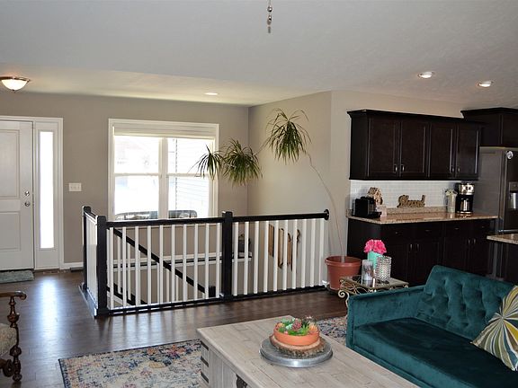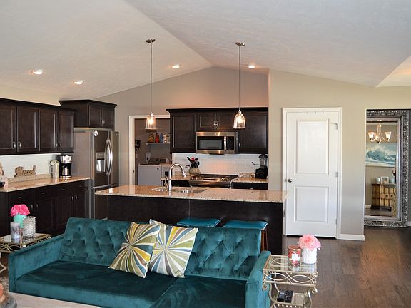 Wonderful open design with upgraded finishes, custom window treatments, cathedral ceiling, fireplace with gas log, hardwood flooring, and open stairway to full basement. Like new condition! The kitchen features granite countertops, stainless steel appliances, an abundance of cabinets and counter space, subway tile backsplash, and a walk-in pantry. The large island provides for additional seating and countertop areas. The main floor laundry room also includes a built-in drop zone. The master bedroom suite is highlighted by a walk-in closet, and full bath with large shower and dual vanities. The full basement is ready for you to finish for your needs with an egress window and bathroom rough-in. Front porch, patio for outdoor entertaining, new gutter guards, and fully fenced backyard.