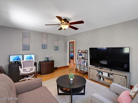 This fantastic, brick, Cape Cod home honors character and charm with stunning wood doors, beautiful archways, and hardwood flooring throughout the first floor living room, hallway, and bedrooms. Tiled floors in the dining area and kitchen along with a gas range all add to the appeal and potential of this home. Upstairs could be a third bedroom or additional living space. Let your imagination run with the possibilities of the blank canvas the unfinished basement provides. The spacious backyard is fully fenced and boasts a large patio area as well as a one car garage. Located near the University of Louisville, Churchill Downs, Iroquois Park, schools, the airport, interstates and more - this home could be what you have been searching for. Call for your showing today!