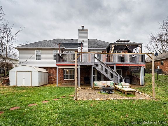 AWARD WINNING FLOYD CENTRAL SCHOOLS! Beautiful WOODED WALKOUT, UPDATED Ranch Plan, 4/6 Beds, 3 FULL Baths. nearly 3,00 sq ft Finished. Established Brookstone Neighborhood, Quiet street, PRIVATE BACKYARD! Lrg OPEN Vaulted Living Rm, Electric FP w/Blower (Lp Gas Connection) NEW WOOD Laminate Flooring. Lrg Eat-in Kitchen w/NEWER FLOORING, Stainless, PANTRY, GRANITE Tops and Painted Cabs! 3 Beds on Main Floor, Main Bed w/Tray Ceiling, Fits Kingsize Furniture, Lrg WIC. Dbl Vanity, Lrg Custom Walk-in Shower w/Glass Doors. FINISHED LOWER LEVEL WALKOUT! Lrg OPEN Rec Room, Great Entertainment Space, Gaming/Billiard Space too! NEW WOOD LAMINATE Flooring, 3rd FULL Bath, 4th Bed w/Egress, PLUS Extra 5/6 Room, potential Office/Exercise/Craft. Covered Patio, LRG 30x14 Deck w/Black Metal Pergola w/Screens STAY, HOT TUB Stays, GORGEOUS WOODED VIEWS, Fire-pit Area w/Lights, FENCED YARD, NEW INSULATED GARAGE DOOR, Attic Pull Down in Garage (Extra Storage) LL Storage too, NEW Water Heater, HVAC NEW last 5 YEARS!