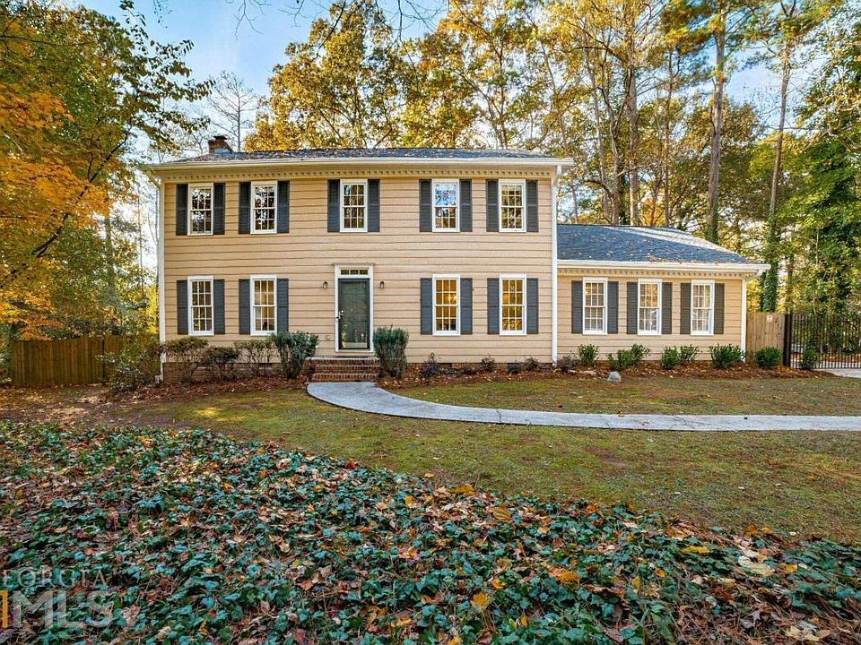 Hurry to see this move-in ready updated five-bedroom, two-and-a-half-bathroom home! Inside you'll find spacious bedrooms, an updated kitchen with granite countertops and stainless steel appliances, and updated bathrooms. The formal dining room is spacious and perfect for entertaining, with a convenient passthrough to the eat-in kitchen. Living room features built-in shelves and gas starter wood burning fireplace. Gleaming hardwood floors throughout and brand new carpet in large main level bonus/bedroom! Fresh paint and new fixtures throughout the home, making it move-in ready! The entire exterior of the home is freshly painted, with a brand new roof, less than two months old, on both house and large outbuilding! The gas hot water heater is less than a year old and over sized. Outside you'll find an entertainers paradise! With a large patio, an outback deck overlooking the creek, and a fire pit. Additionally, there is a large outbuilding, with two garage parking spots and an additional work room area, complete with a tiki bar window to the back yard and a storage space above. The expansive backyard is fully fenced and is large enough for a pool to potentially be installed. Located in a great swim/tennis community and is conveniently located near GA285.