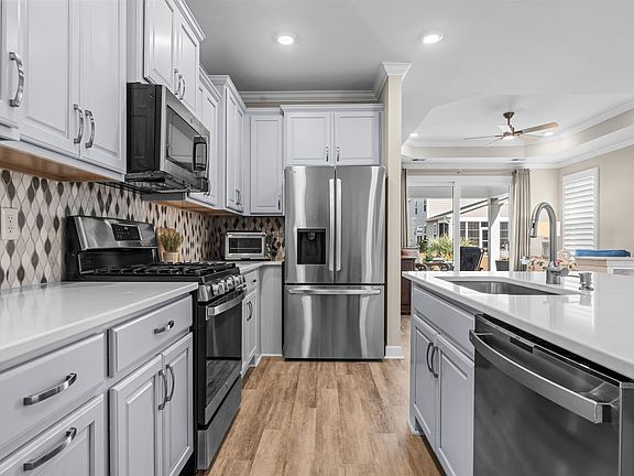 - Features: Breakfast Bar, Kitchen Island, Pantry, Stainless Steel Appliances, Solid Surface Counters