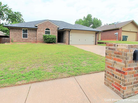 CLEAN Northeast Edmond home available around November 1st! This 3 bedroom, 2 bathroom, 2 car garage house is walking distance to award winning Edmond schools (Northern Hills, Sequoyah and North) and UCO! The spacious kitchen has quartz counter tops and includes appliances (side by side refrigerator, oven/range, and dishwasher.) The kitchen opens up into the dining room and large family room featuring vaulted ceilings and a beautiful fireplace. The primary bedroom has TWO walk-in closets and an ensuite bathroom which boasts a double vanity. The beautiful tile surrounding the bathtub and standalone walk-in shower will make getting ready for work or class the best part of your day. The two other bedrooms are close to the second updated bathroom. The main living areas, kitchen, laundry room, hallways etc. have wood tile. The home has 10 foot ceilings and ceiling fans in every bedroom and in the family room. Every window has custom faux wood blinds, the kitchen has a pantry and the indoor utility room includes a washer and dryer! Schedule a viewing by emailing Viewing at CorkPM dot com with your first and last name(s), phone number, address of the property you would like to view and the best days/times for a viewing. 12 Month Lease. Tenant pays utilities and maintains lawn/landscaping. Pets considered with a non-refundable fee (ask for details, restrictions apply). NO SMOKING. NO past evictions or judgments from non-payment. Zillow applications NOT accepted. First step in the application process is at CorkPM dot com