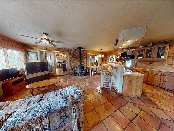 This beautifully unique home is located on 2+ acres behind Pikes Peak between Divide and Cripple Creek that is adjoined to BLM land.This home offers a mother in law suite/apartment that is fully functional The log home was built on land overlooking aspen meadows that hosts Rocky Mountain wildlife & spectacular mountainous views. Natural light flows into a Great Room featuring vaulted ceilings, ceiling fans, wood floors, lots of south-facing wood windows, wet bar and a functional wood stove. Also on the main level, you'll find primary suite with walk-in closet and adjoining bathroom, 2nd bedroom, full bath and laundry. The kitchen has custom tile counters, tile floors, and another functional wood stove. There is an insulated attic with pull-down stairs for lots of storage. Plenty of spaces to enjoy the weather and wildlife featuring a covered front porch with porch swing, back deck overlooking aspen meadows, or brick patio complete with fire pit. The lower level mother-in-law apt has own outside entry & features a family room, office with French doors, 2 bedrooms, 2nd kitchen, full bath and second laundry can also be opened to upper level with adjoining locking doors. The detached 2 car garage has a large workshop with heating, plumbing, functional wood stove, tile floors, pine wood ceiling, built-in cabinets, 3/4 bath and French doors leading to its own deck. The garage also has an upstairs bedroom and plenty of storage, closed off with custom made doors. Also an attached carport for SUV's, boats, etc., 2 storage sheds, 3+ outdoor parking spots & fencing. This property is perfect for hikes at the Dome Rock Wildlife Reserve, Mueller State Park, and access to the greater Rocky Mountain ranges. Entertainment is minutes away in Cripple Creek, dining and community. Fishing all around, Colorado skiing only hrs away, an hour from CO Springs, another from Denver, only 30 mins from Woodland Park which makes it convenient for year-around living or the perfect vacation home.