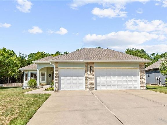 Discover the charm and comfort of this custom reverse ranch with three-car garage perfectly nestled in a peaceful cul-de-sac. Designed for effortless one-level living, this gem offers large Andersen double-pane windows and cellular blinds for excellent climate control, and a sound system throughout the main level.Open-concept kitchen boasts many cabinets and deep drawers underneath a cozy bay window seat for additional storage. Custom hexagon island includes-Seating for six-storage areas-and a lazy susan on top to serve all guests easily.The adjoining living and dining areas flow seamlessly, leading to an outdoor composite deck and all-weather tile patio with stunning views of your private, tree-lined backyard.The main-floor primary suite is a serene retreat featuring an ensuite bathroom with-Custom double vanities with granite countertops-Convenient storage space for additional towels-A luxurious jacuzzi tub-Spacious, tiled walk-in shower. Also on the main level is the stunning, modern guest half-bath, which features ample granite counter space and additional storage. For added convenience, the laundry room is on the main floor. Head downstairs to a welcoming lower level that opens up from the staircase into a large family room with a custom-built media center and surround sound. The room is surrounded by three additional bedrooms, each with its own walk-in closet. Sunlight pours in through egress windows, giving the space a bright and airy feel. Plus, you'll love the extra storage space with built-in shelving throughout.The lower level features a second full bath with double vanities and plenty of storage.Every corner of this home showcases meticulous design, special faux finishes, and decor, from the elegant foyer to the beautifully styled living areas on both floors. Roof and gutters replaced in 2024. Please request to see the full list of features and updates!