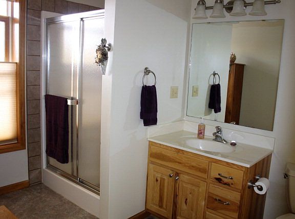 MLS #156835: Custom-built, w/view of Mitchell Creek River. 3BRs/2.5BAs, family areas, 2 FPs, vaulted wooden ceilings. Bsmt. is fin. for 2nd living area (w/kitchen). On sewer, 4+ acres w/circular drive. $369,000