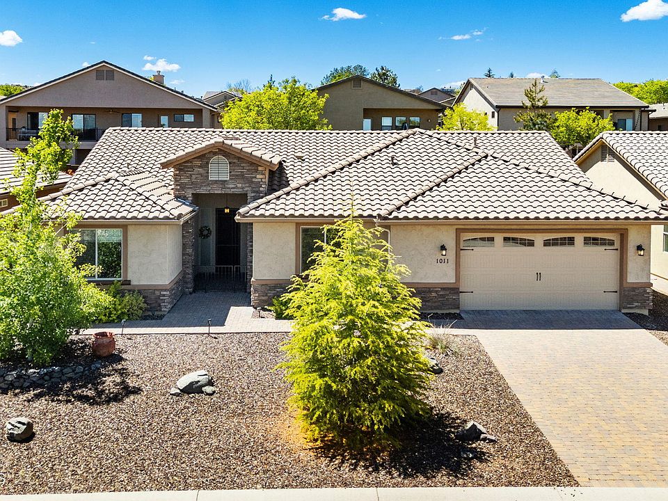 Welcome to this stunning 3-bedroom, 3-bathroom home nestled in a private gated community in Prescott. Freshly painted and impeccably maintained, this residence features a spacious kitchen, hardwood floors, granite countertops, and custom cabinetry throughout. The spacious open living area includes a cozy gas fireplace, perfect for relaxing evenings. The oversized garage boasts an epoxy floor, offering both style and durability. A highlight of this home is the private casita with its own entrance, full bath, kitchenette, and laundry--ideal for guests, in-laws, or rental potential. Conveniently located just minutes from downtown Prescott, shopping, and scenic trails, this home offers both luxury and a lock and leave lifestyle.