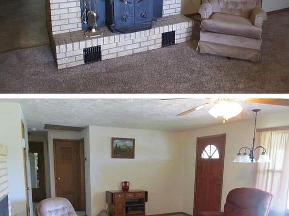 This Beautiful & roomy 4 bedroom 2 1/2 bathroom home in Ava sitting on about 2 acres has so much to offer. Master bedroom has his and her walk-in closets (one closet has a trap door) as well as his and her sinks in master bath. Has high efficiency HVAC, double sided fireplace in living room/kitchen, awesome new Coca Cola bar in kitchen, and mud/laundry room that goes into garage. Attached 2 car garage, detached 2 car garage/workshop, and barn. Huge yard with landscaping, partial chain link fence and has a fenced in area in the back for pets. New metal roof less than 3 years old, nice front and back covered porches perfect for grilling and chilling. This would make a great family home! Pictures don't do the justice of this beautiful home so call to schedule your showing today! Selling as is!