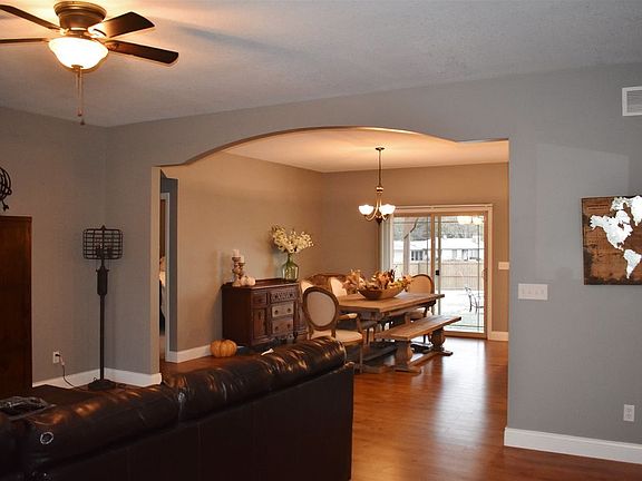 Must see this 3bdrm, 2bath brick & vinyl home featuring split bedroom floor plan, master suite w/ jetted tub, double sink vanity, separate shower, walk-in closet, kitchen w/ granite, breakfast bar, appliances to stay, main floor laundry, full bsmt, large backyard with privacy fence, patio w/ pergola, & firepit area, 2car att. grg on large lot. Conveniently located close to Hwy 50 bypass & I-69.