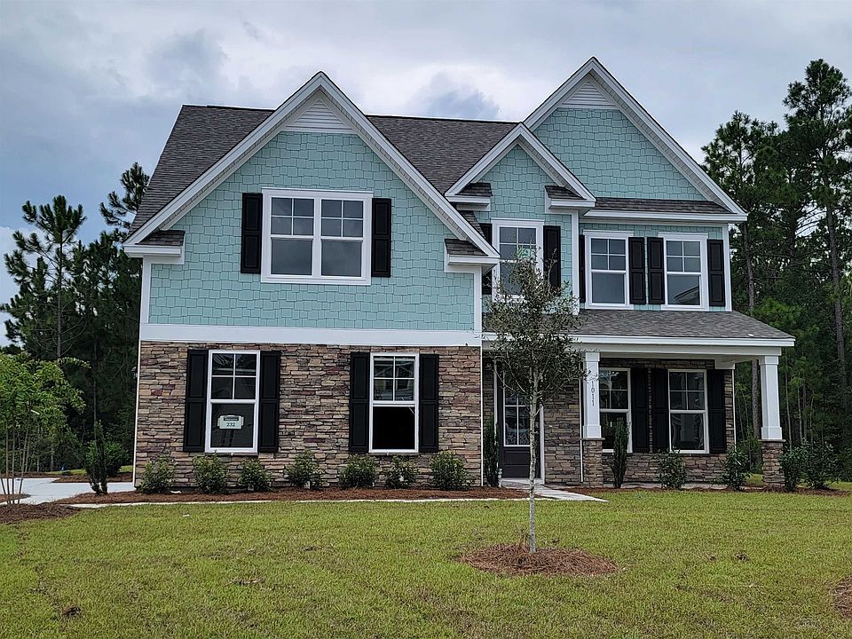 Our Forrester plan is a well appointed two-story home with a picturesque front porch, formal dining area, and a huge kitchen island! The kitchen features painted cabinetry, quartz countertops, tile backsplash and stainless Whirlpool appliances including a gas range. A bedroom and full bath on the first floor are perfect for guests visiting you at the beach while the grand primary bedroom, two additional bedrooms, the laundry room, and a large bonus room over the garage are upstairs. This home is located in Brighton Lakes! This luxurious community includes an array of oversized homesites along with a gated entrance and large community center. The variety of homesites comprise of private wooded views, pond views and convenient cul-de-sac, all of which will highlight the side-load garage entry giving a beautiful curb appeal to your new home. It is extremely close to multiple grocery stores, restaurants, shopping, hospitals and much more including the newly constructed walking paths on Carolina Forest Blvd. stretching nearly 7 miles! *Photos are of a similar Forrester home. (Home and community information, including pricing, included features, terms, availability and amenities, are subject to change prior to sale at any time without notice or obligation. Square footages are approximate. Pictures, photographs, colors, features, and sizes are for illustration purposes only and will vary from the homes as built. Equal housing opportunity builder.)