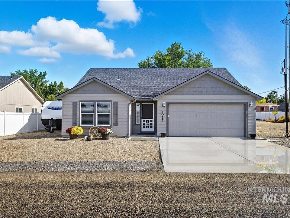 Welcome to your country dream home! This beautifully maintained 2020 single-level gem offers 1,421 sq ft of open-concept living with NO HOA! Featuring 3 spacious bedrooms and 2 full baths, the split floor plan ensures privacy and comfort. The primary suite is a true retreat with dual walk-in closets and a double-sink vanity. Soaring vaulted ceilings create an airy, expansive feel throughout the living area. The chef’s kitchen shines with granite countertops, a large island, solid oak cabinetry, and a walk-in pantry—perfect for entertaining or quiet nights in. Step outside to a covered patio, ideal for year-round enjoyment, plus a handy storage shed for all your gear. Need space for your toys? You’ll love the RV parking and extra parking pad on the opposite side of the home. Located just ½ mile from the Snake River, enjoy easy access to the park and boat launch. All this, just 20 minutes to Caldwell and Nampa—experience peaceful country living with city conveniences close by!