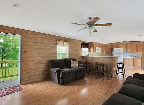 $5,000 CLOSING COSTS PAID! Like new and ready to move right in! 2.97 acres with pacious ranch-style home. New laminate flooring throughout the great room and kitchen. Immaculate condition. All appliances convey, range, dishwasher, microwave, refrigerator, washer and dryer. Breakfast bar between the great room and kitchen, great for entertaining. Large master bedroom with berber carpet, huge walk-in closet, lovely master bath with oversized tub/shower & laminate flooring. Second bedroom with carpet and easy access to the hall bath. Laundry area with washer and dryer and cabinetry in hall way from kitchen to master bedroom. Beautiful wooded acreage behind the home to enjoy the outdoors and nature.