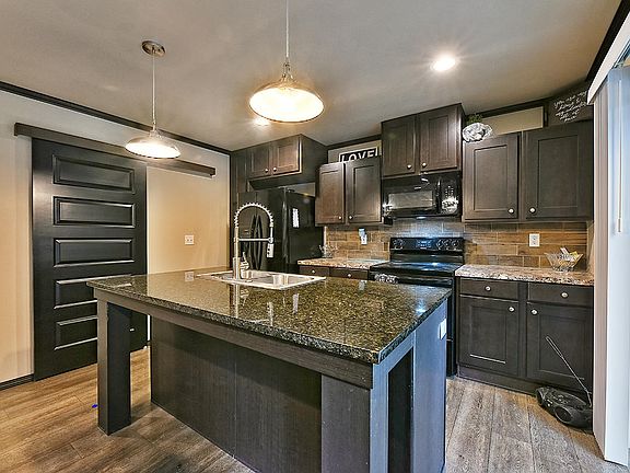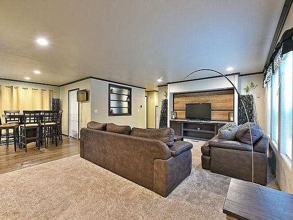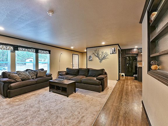 Rural living w/ a luxury feel! This custom Clayton Patriot edition 3 bed/ 2 bath home is perfect w/ its wooded surroundings. Walking in you are greeted by a beautiful wood accent wall in the entry to a lg open concept living area including beautiful granite top built-ins. Kitchen boasts an oversized large kitchen island great for entertaining with granite counters, coffee colored cabinets, a barn style door pantry, & slider to the back deck. Off the dinning area is an oversized laundry room/ craft room w/ a laundry shoot, storage cabinets & a rollout island for additional crating. Master suite is located opposite the guest rooms for plenty of privacy, & an exquisite spa-like master bath. Master bath boasts a stand alone soaking tub, beautiful walk-in tile shower, & dual vanities w/ ample cabinet/ storage space. Outside is stunning wooded surroundings & only a couple blocks from a river front park. Don't miss out on this exquisite home!