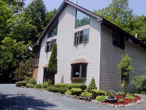 Friends Lake - Motivated Sellers A Magnificent 4-Season Contemporary Home! Open, Bright, Private 3 Bedrooms & 3 Bathrooms with Master Suite! Wood Fireplace, Vaulted Ceilings, Hot Tub, Circular Drive, 1/3 Owner of 215' of Gorgeous Shorefront on 2+ acres, Beautiful Perennials & Underground Sprinkler System! $335,000.