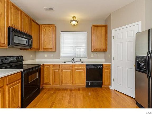 3 bedroom, 2.5 bath two story home ready for immediate move in! This home has a 14 X 12 Loft in addition to the 3 bedrooms, convenient second floor laundry and 1,678 square feet of living space. Features include 9 foot ceilings, new carpet throughout (Sept 2015), 42 inch cabinets, hardwood flooring, walk in pantry, smooth top range, micro, dishwasher, sliding door to a private 12 X 12 patio, ceiling fans, walk in closet in the Master, convenient second floor laundry, white 6 panel doors, generous sized bedrooms, linen closet, fresh paint (Sept 2015), Security system, an attached two car rear entry garage and more. The exterior is charming and low maintenance with vinyl siding and enclosed fascia and soffits. Enjoy the community amenities including a pool, bath house and a playground as well as desirable Wentzville schools. This fantastic location is minutes from Highways 70, 40 and 364 as well as restaurants, shopping and services on nearby Wentzville Parkway.
