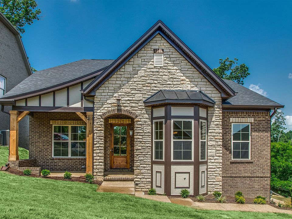 The Tampa Bay model built on a lovely tree lined lot on the lake in gated community with basement, master down and lots of extras. Stacked stone fireplace, granite, hardwoods, with a covered deck and a large patio over looking the lake.