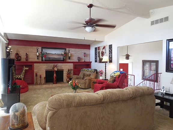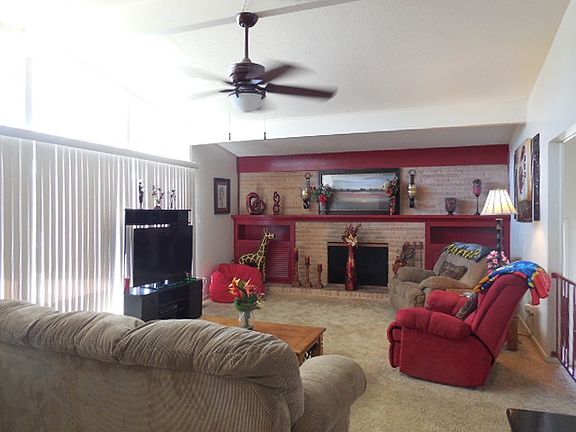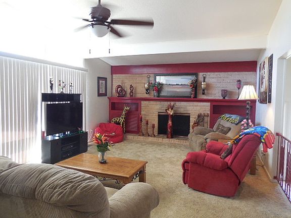 Nice floor plan! Updated kitchen & full wall of storage in formal dining room. Lovely accent wall in LR w/full wall hearth, wood burning fireplace (w/gas starter), & built-in storage. Lots of natural light & great storage throughout. 2 BRs on main level, HUGE 3rd multipurpose room downstairs (BR/exercise/playroom) (13'10x24'3) w/full wall of windows & walk-in closet. Easy-care yard & huge patio area. Enjoy space, shade & fun nearly year round; Cahoon Park very close. Extra parking.