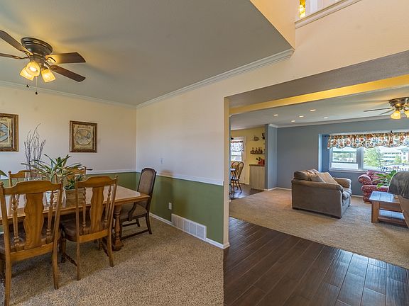 Location, location, location! Close to schools, shopping, park and easy highway access. This fantastic home is at the end of a quiet cul-de-sac on a corner lot with spectacular views. Large fenced back yard with storage shed & composite deck with incredible views of the USAFA and Pikes Peak. Many updates have been done over the last few years including kitchen remodel, new Milgard windows, and new roof and gutters in 2014. Inside the home has an open floor plan with useful layout and a nice finished basement with wet bar. Open floor plan includes a great room with gas fireplace & picture windows for natural light, open kitchen with walkout to deck & large pantry. Large formal dining room. Master suite features a 5-piece master bathroom and a large walk-in closet. Wet bar, large laundry room and rec room in the basement. New paint, new roof, new carpet in 2014 & more! HOA dues of $35/year cover lawn care for the greenway just West of the property fence boundary.