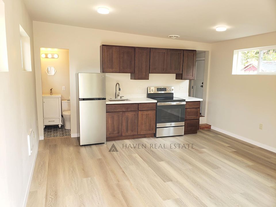 Located in the beautiful Albany Terrace neighborhood, this private and charming studio apartment (ADU) was recently renovated and features gorgeous contemporary finishes throughout. The large main space offers a luxurious kitchen line with quartz counters, under-mount sink, stainless steel appliances, and ample cabinet space. Elegant engineered floors span both spaces and new double-paned windows and sliding doors offer great insulation while providing ample natural light. The adjoining alcove is the perfect space for a small bedroom or home office. Behind the kitchen, you will find a pantry/ storage room with new washer and dryer and a separate entrance to the apartment. Large sliding doors lead to a serene private patio and the side yard is surrounded by redwood fencing and is ideal for raised beds and an herb garden. This apartment is just a short distance from the Ohlone Greenway where you will find beautiful walking and bike paths, and easy access to nearby parks and playgrounds. Shopping and restaurants await just a few blocks away on Albany's famous Solano Avenue. The El Cerrito Plaza is also close by and offers a variety of shops and stores such as Trader Joes, Lucky, CVS, Farmers Market, Starbucks, and more. Transportation is made easy via AC Transit bus lines on Solano Avenue and Bay Area Rapid Transit (BART) is close by at the El Cerrito Plaza BART station. Nearby schools include Albany Middle School, Albany High School, Cornell Elementary School, Marin Elementary School, and Albany Preschool. Features: Studio with Bedroom/ Office Alcove Bathroom with Shower Stainless Steel Refrigerator Stainless Steel Range Quartz Counter with Undermount Sink Ample Cabinet Space Engineered Wood Floors Separate Pantry with Washer/ Dryer Electric Wall Heat Private Patio and Side Yard New Fencing On-Street parking only 350 sq.ft. (approx.) WalkScore 90 Pets ok (cats/ small dogs- 30lbs or less)(subject to owner approval, breed restrictions and $500 pet deposit) Not Furnished No Smoking Available Now $1,975.00 per month (one-year lease) $2,500.00 security deposit Utilities- Tenants to pay Owners a $250.00 monthly flat rate for utilities (limited to electricity, water, and garbage)