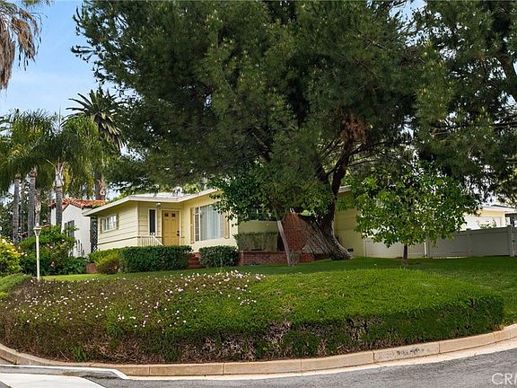 Charming single story bungalow in the hills of South Redlands with a detached two car garage and a private yard. Situated on a lush corner lot in the sought after 'La La's' neighborhood, the entire street is steeped with character and pride of ownership - this home is no exception. Enter into a beautiful living room with real hardwood floors that flows into a segmented dining area and a light, airy kitchen. Natural sunlight floods in through large windows and accentuates the brick fireplace. A room at the back of the house features wainscoting and a slider door which leads out to the covered back patio. A primary bedroom has it's own half bathroom. This location is quiet and peaceful, but less than three miles from downtown shopping and dining. Excellent Redlands Schools.